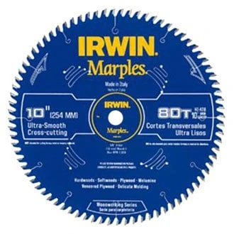 Marples™ 10″ 80T Carbide Hi-ATB Circular Saw Blade (1807370) by IRWIN®. IRWIN is proud to introduce a full line of fine woodworking saw blades that are manufactured in Italy to the highest standards of precision required for fine woodworking and finish carpentry.