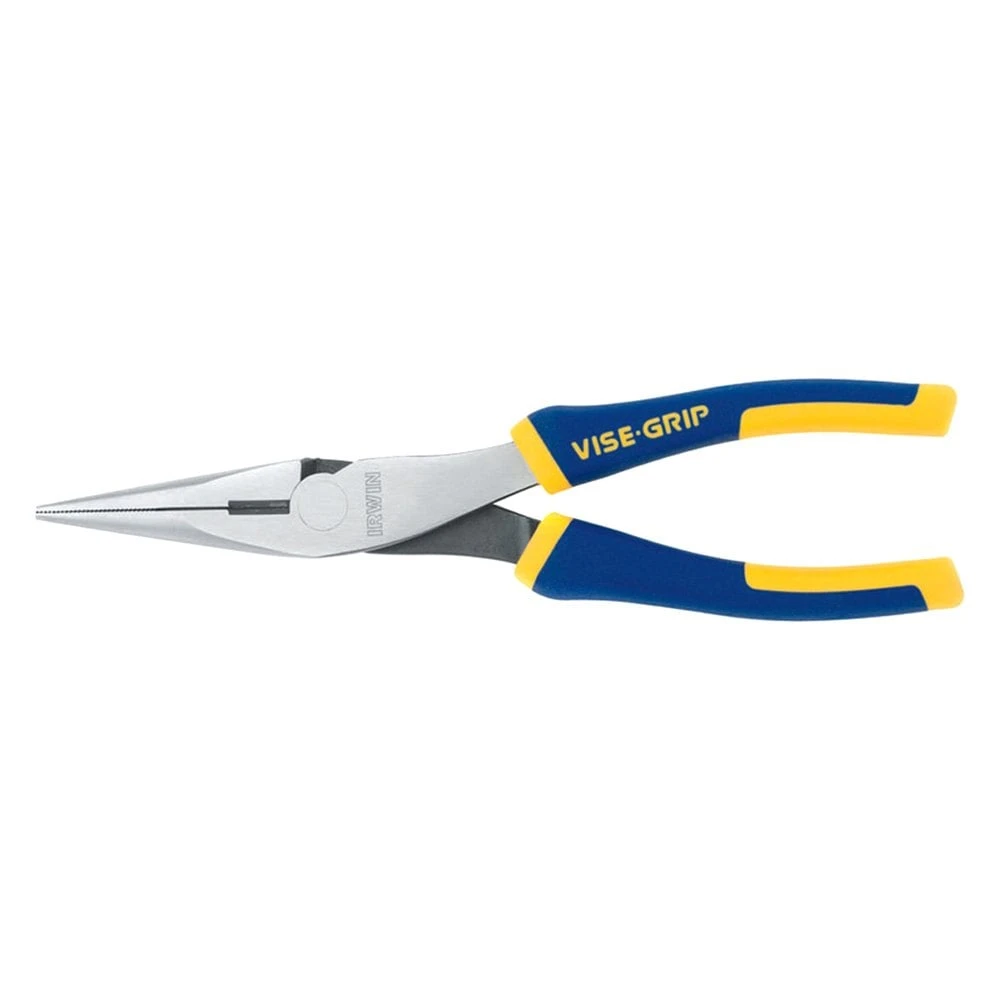 Vise-Grip™ ProTouch™ 8″ XLT Joint Straight Jaws Multi-Material Handle Cutting Needle Nose Pliers (2078218) by IRWIN®. With Spring. Whether you’re performing electrical work in a tight or confined place, removing spatter or doing anything in between, rely on Irwin for premium-quality pliers that will help you get your job done faster and with greater precision. Featuring a super durable construction, these pliers are proven to cut even the toughest and thickest materials. What’s more, they have an ergonomic design for increased comfort.