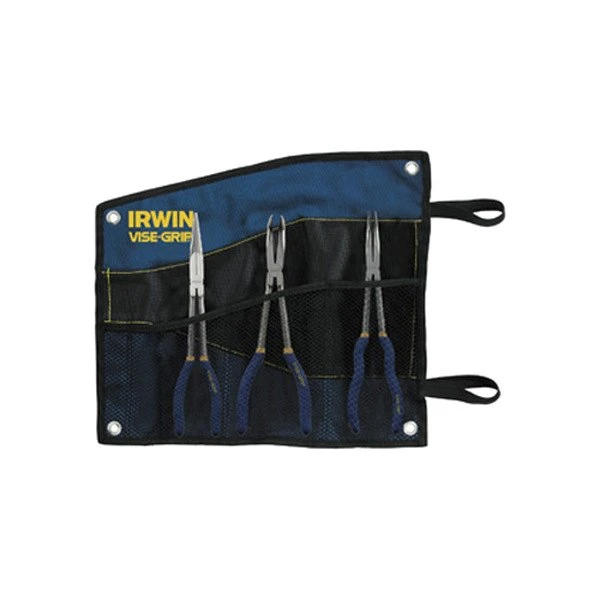 3-piece 11″ Box Joint Straight Bent Jaws Dipped Handle Long Reach Needle Nose Pliers Set by IRWIN®. 3 Different long reaching tools to get into confined spaces and complete the job that needs to get done. The machined jaws on the 3 long reach Pliers provide maximum gripping power. Superior long reach for working in tight or confined areas -Machined jawed teeth for maximum gripping strength Lifetime guarantee.