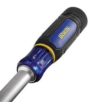 7-piece 1/4″ to 1/2″ Multi Material Handle Nut Driver Set by IRWIN®. When completing jobs, users must use a variety of nut driver sizes to fasten nuts and bolts. The IRWIN 6-in-1 Nut Driver increases convenience on the job by combining 6 sizes into one tool. It features on-board storage of 3 double-ended sockets for easy access to six different hex sizes. This one-of-a-kind tool is available in both SAE and metric sizes.