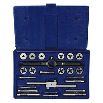 - Metric Plug Tap and 1″ Hexagon Dies in sizes: M3 x 0.50, M4 x 0.70, M5 x 0.80, M6 x 1.00, M7 x 1.00, M8 x 1.25, M9 x 1.25, M10 x 1.50, M12 x 1.50, M12 x 1.75