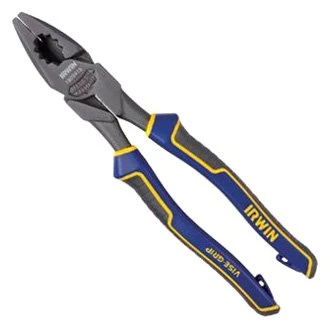 Vise-Grip™ 9-1/2″ Multi-Material Handle Combination Jaws Fish Tape Puller Linemans Pliers by IRWIN®. With Fish Tape Puller. Whether you’re performing electrical work in a tight or confined place, removing spatter or doing anything in between, rely on Irwin for premium-quality pliers that will help you get your job done faster and with greater precision. Featuring a super durable construction, these pliers are proven to cut even the toughest and thickest materials. What’s more, they have an ergonomic design for increased comfort.