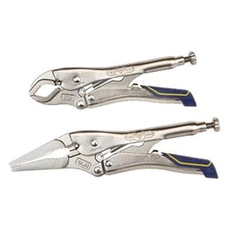 Vise Grip™ Fast Release™ 2-piece 7″ to 9″ Metal Handle V/Long Nose Jaws Locking Pliers Set by IRWIN®. The IRWIN VISE-GRIP fast release locking pliers set are built with Heat treated alloy steel for maximum durability. Features an easy to open, no-trigger release ansd hardened teeth Designed to grip from any angle. All tools in the kit feature a redesigned tactile grip for improved control.