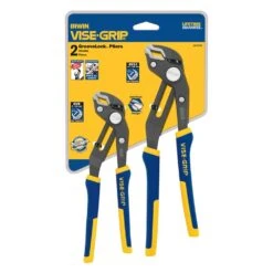 Vise-Grip™ GrooveLock™ 2-piece 8″ to 10″ V-Jaws Multi-Material Handle Push Button Ratcheting Tongue & Groove Pliers Set by IRWIN®. Whether you’re performing electrical work in a tight or confined place, removing spatter or doing anything in between, rely on Irwin for premium-quality pliers that will help you get your job done faster and with greater precision. Featuring a super durable construction, these pliers are proven to cut even the toughest and thickest materials. What’s more, they have an ergonomic design for increased comfort.